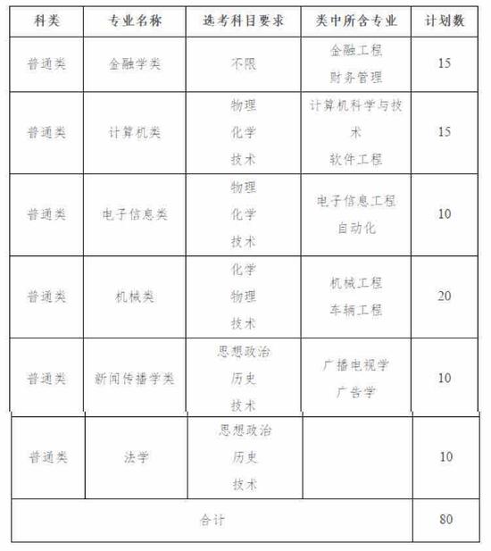 第十二條 學(xué)校2019年“三位一體”綜合評價招生計劃總數(shù)為80名,具體招生專業(yè)(類)計劃如下表所示: